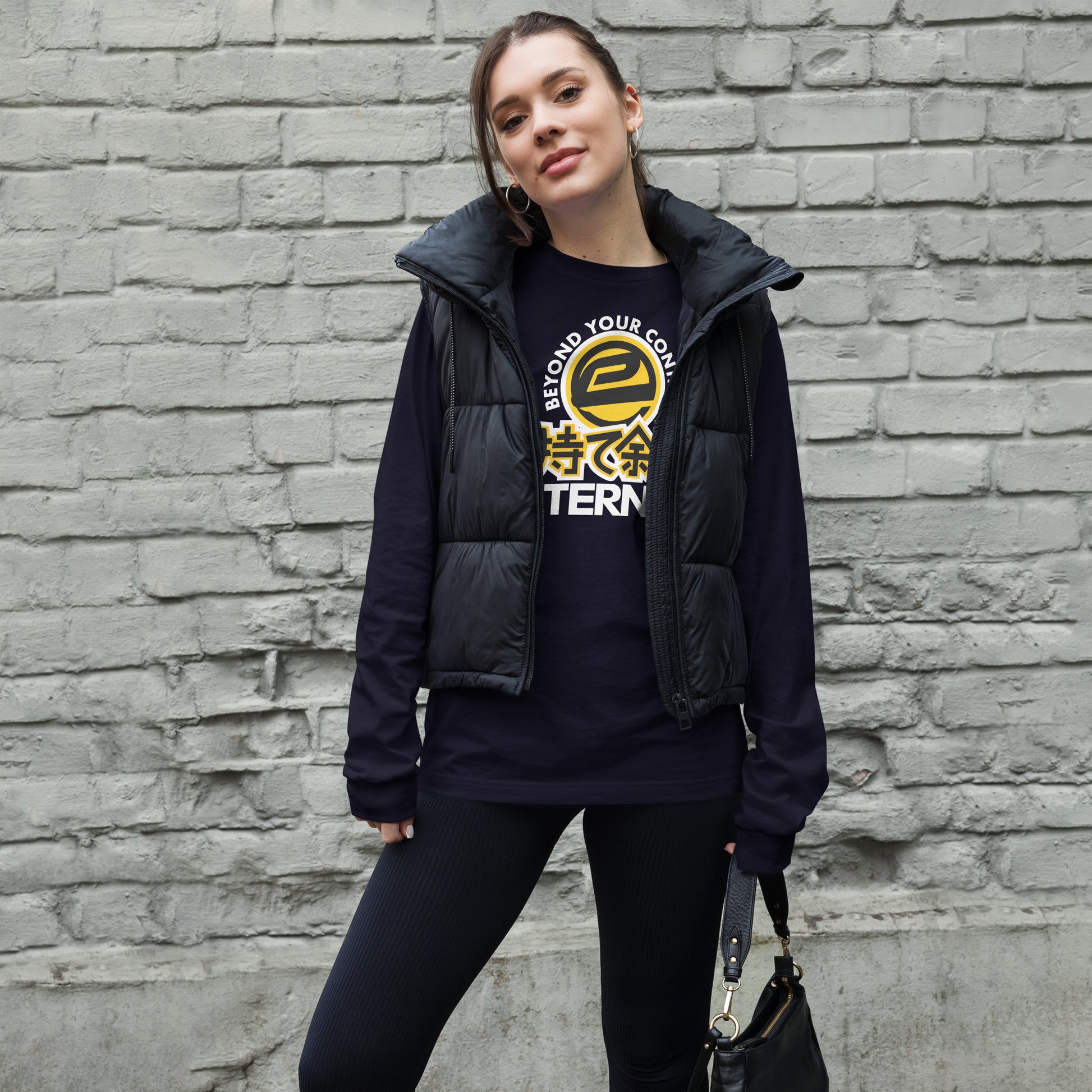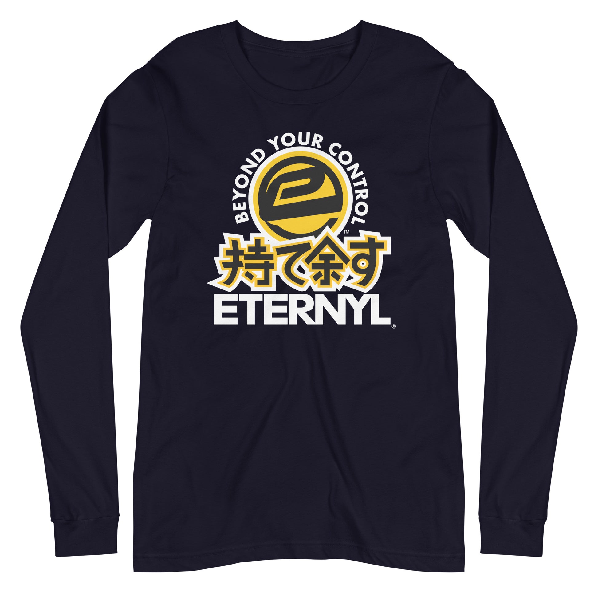 Eternyl Beyond Kanji Long Sleeve. Enrich your wardrobe with a versatile long sleeve tee. For a casual look, combine it with your favorite jeans, and layer it with a button-up shirt, a zip-up hoodie, or a snazzy jacket. Dress it up with formal trousers or chinos to achieve a more professional look.